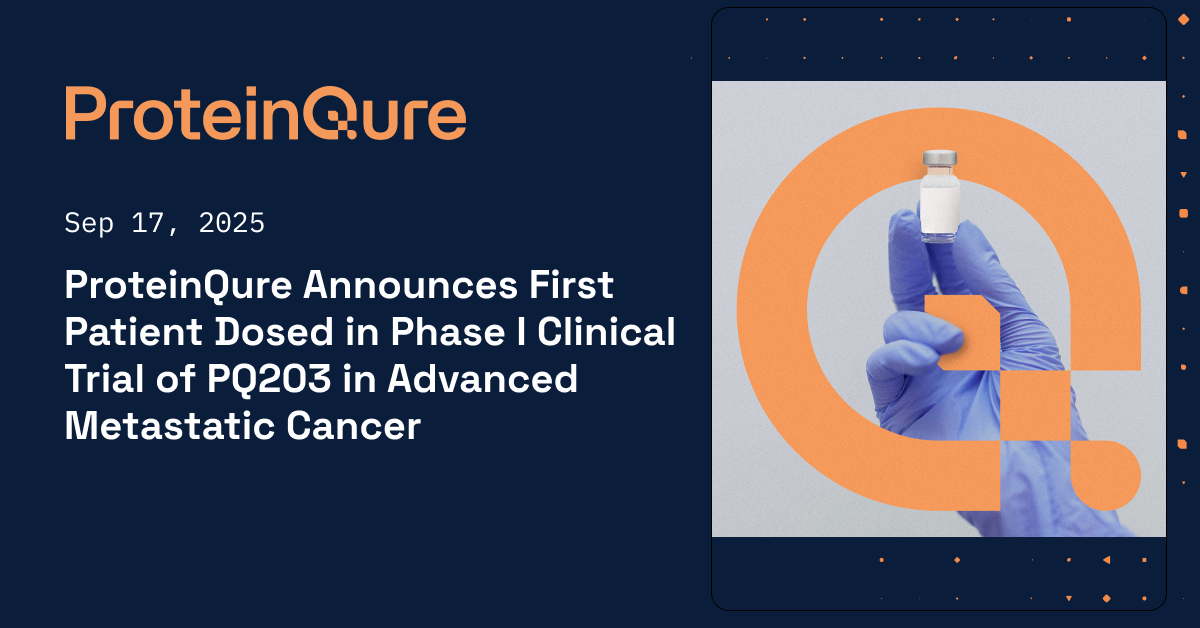 ProteinQure Announces First Patient Dosed in Phase I Clinical Trial of PQ203 in Advanced Metastatic Cancer